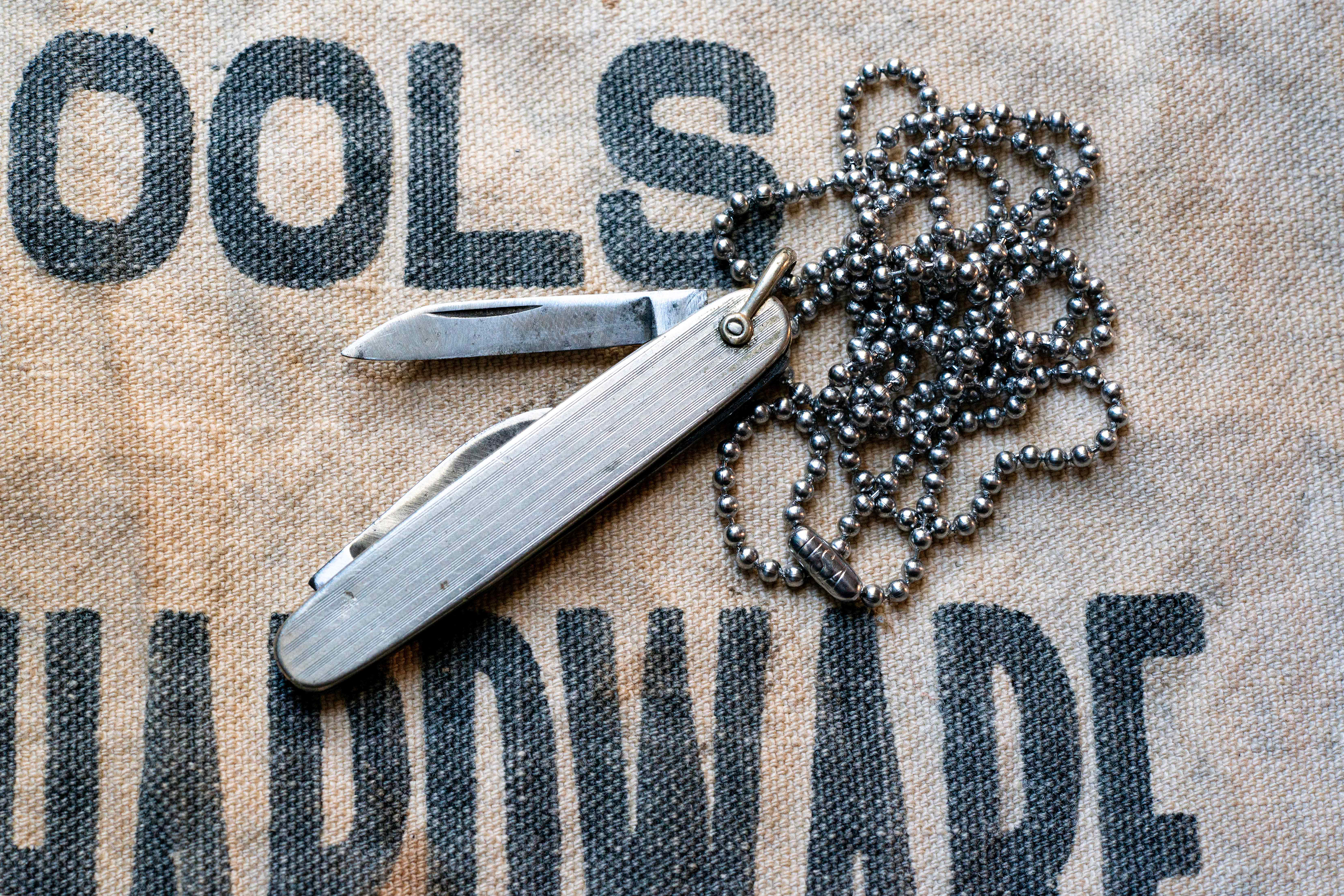Assembled in New England using an authentic miniature two blade pen knife and stainless ball chain made in the USA by the exclusive supplier to the US Military who has been making these chains for over 80 years.